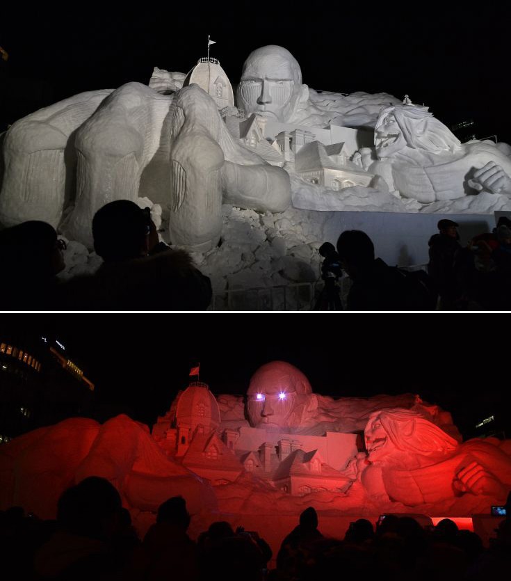 Μεταξύ των γλυπτών που μπορούν να θαυμάσουν φέτος οι επισκέπτες του φεστιβάλ, περιλαμβάνονται φιγούρες από διάφορα anime, όπως από το «DragonBall», καθώς και πρόσωπα ιαπώνων σταρ. Όλα αυτά, φυσικά, φαίνονται ακόμη πιο εντυπωσιακά όταν οι διοργανωτές τα φωτίσουν με διάφορους περίτεχνους τρόπους.