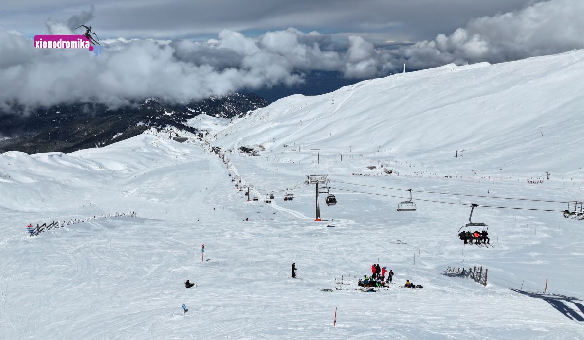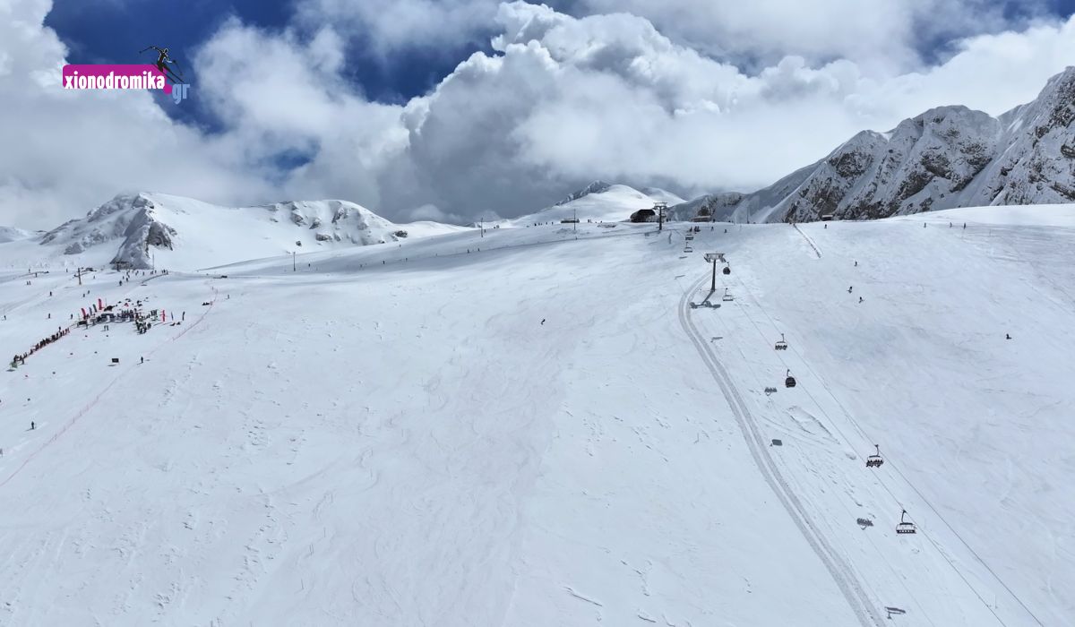 Το χιονοδρομικό του τερέν απλώνεται σε δύο διαφορετικές περιοχές, τα Κελλάρια και τη Φτερόλακκα. Το 2014 πραγματοποιήθηκε η πρώτη φάση του εκσυγχρονισμού του που αφορούσε τα Κελλάρια. O νέος υπερσύγχρονος αναβατήρα τύπου Combi με την ονομασία «Αφροδίτη - Βάκχος» περιλαμβάνει τον αποσυμπλεκόμενο αναβατήρα με 8-θέσιες καμπίνες (8 MGD) «Αφροδίτη» και τον αποσυμπλεκόμενο αναβατήρα με 6-θέσιες καρέκλες και 8-θέσιες καμπίνες (6/8 CGD) «Βάκχος». Οι δύο αναβατήρες συνδέονται στον ενδιάμεσο σταθμό στα Κελλάρια 1950 και έχουν σχεδιαστεί να λειτουργούν συνδυαστικά ή ανεξάρτητα.